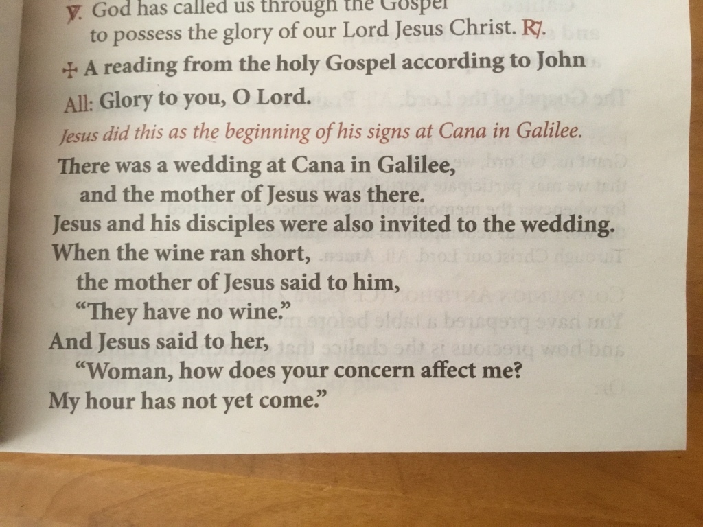 The wedding at Cana was today’s Gospel reading according to John. It is one of my favorite readings. It has inspired countless works of art.